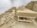 ניתאי חלופ, אבן דרך, 2023, שולחן עץ, חול "זיףזיף" טיט דחוס ללבנים